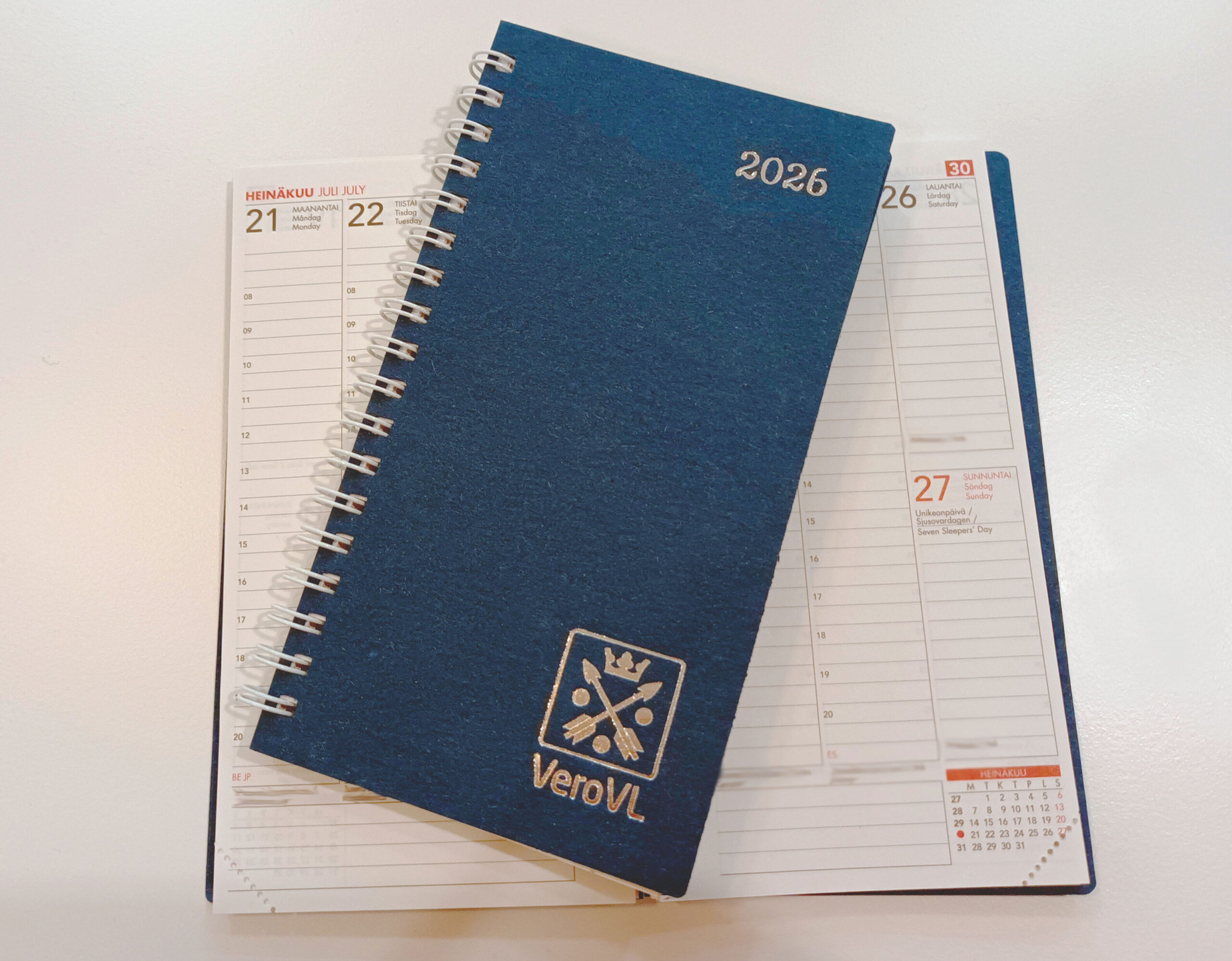 VeroVL:n taskukalenteri 2026 on suurin piirtein samannäköinen kuin kuvassa. Kalenteria ei ole vielä saatu painosta.